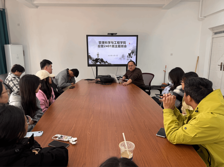 结合管理科学与工程学科特色,班会重点聚焦数字经济、智慧城市、区域协调发展等领域,探讨中国式现代化进程中专业人才的使命与担当。辅导员结合行业案例,讲解了大数据分析、供应链优化、工程管理等专业知识在推进现代化建设中的实践应用,引导学生思考“如何立足专业助力中国式现代化”。讨论环节中,同学们踊跃发言,围绕专业学习、实践创新、志愿服务等方面分享感悟:“要扎实掌握数据分析技能,为智慧城市建设提供技术支持”;“积极参与乡村振兴调研,用管理知识助力基层发展”,充分展现了新时代青年的责任与抱负。