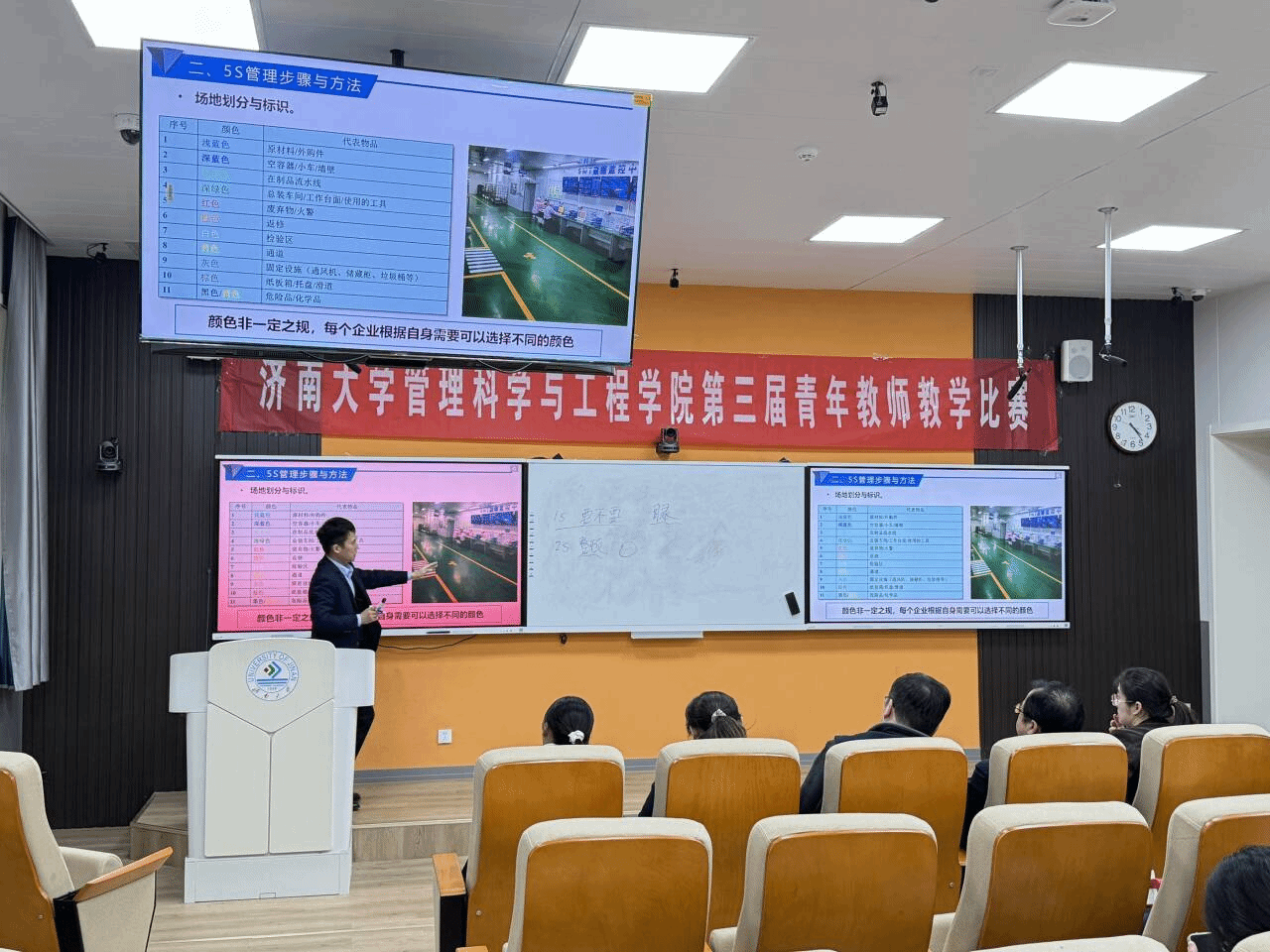 比赛开始前,常相全就比赛的重要意义向现场人员进行了阐述。他认为,通过积极准备并参与学院青年教师教学比赛,一方面可以增强教学技能和课堂把控能力,另一方面也可以通过现场展示不断提升个人讲课技巧和教学设计能力。随后就比赛的评分标准做了简单介绍。