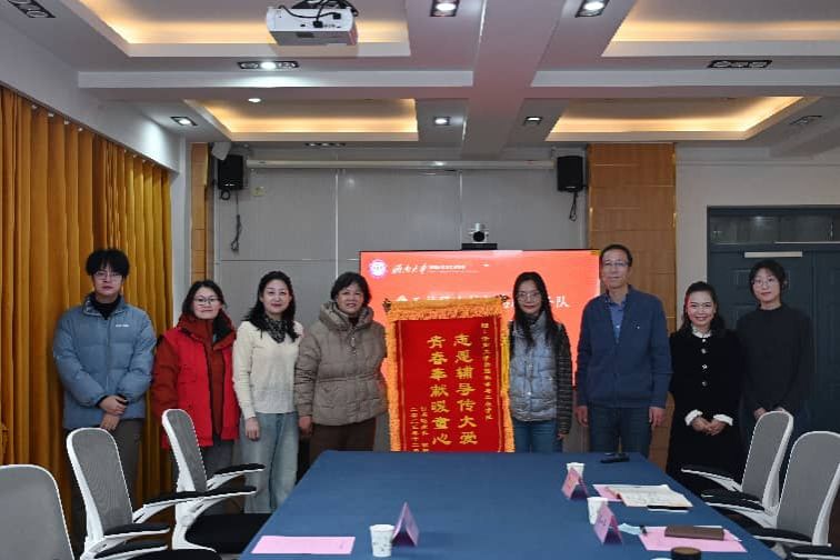 2025年12月23日,禁忌书屋 与舜耕路街道舜玉社区举办校地志愿服务座谈会暨锦旗赠予仪式。舜玉社区党委书记孙怡、新时代文明实践活动负责人张然然及帮扶对象付同学家长等社区来客参会,学院党委副书记郭华、学办主任张敏男和辅导员苏一平、贾先岩及志愿者代表杨雪丽、颜子博出席。